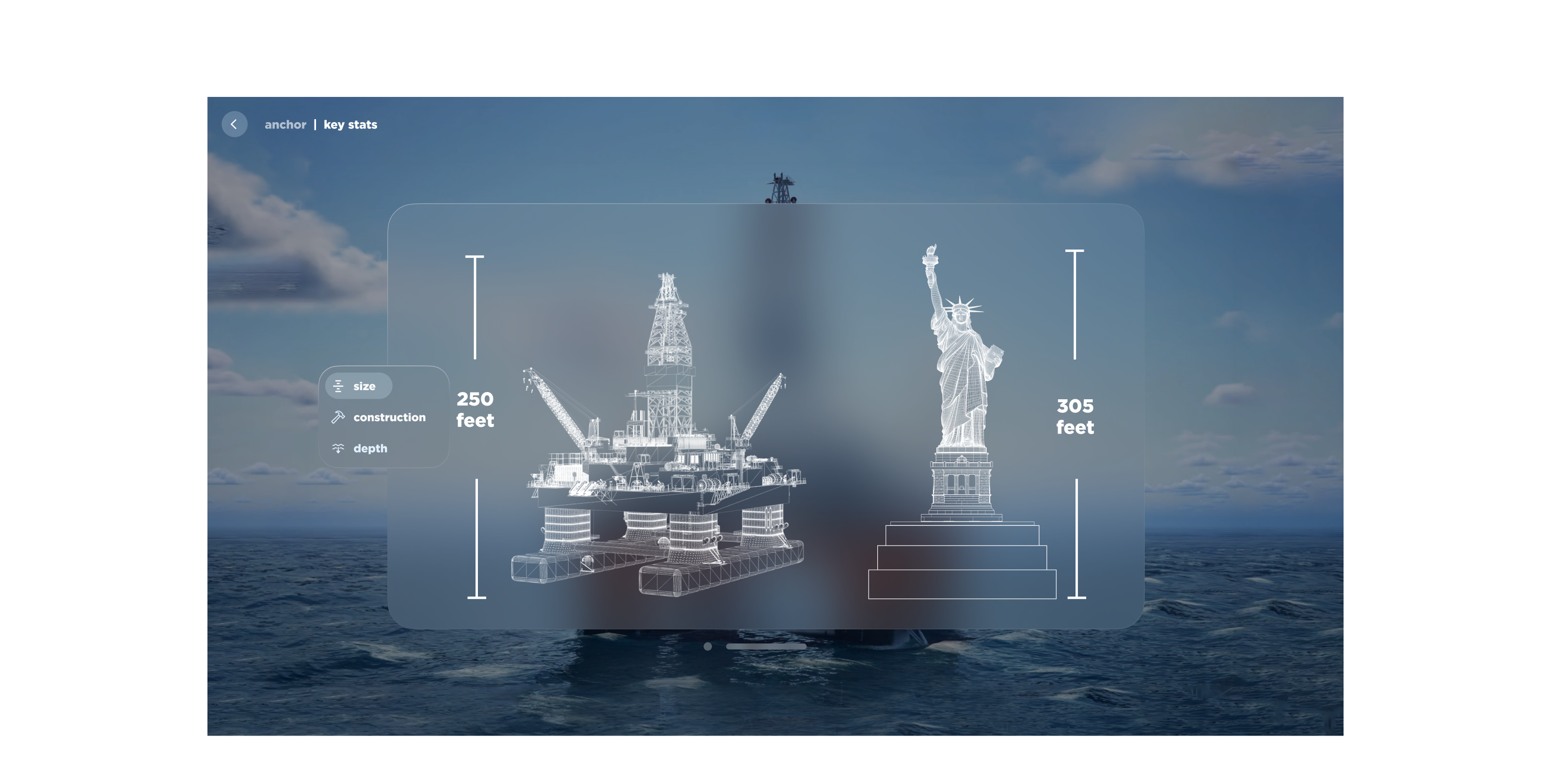 chevron requested an experience to help them share their new semi-submersible floating product unit to the world and help them be seen as an innovator in their industry. our answer to sharing a platform standing in the middle of the Gulf of Mexico to the world was to bring the world to it...digitally. we built a demo for the apple vision pro that would bring viewers up close and personal with the platform and give them the ability to navigate through it to learn about oil and gas production.