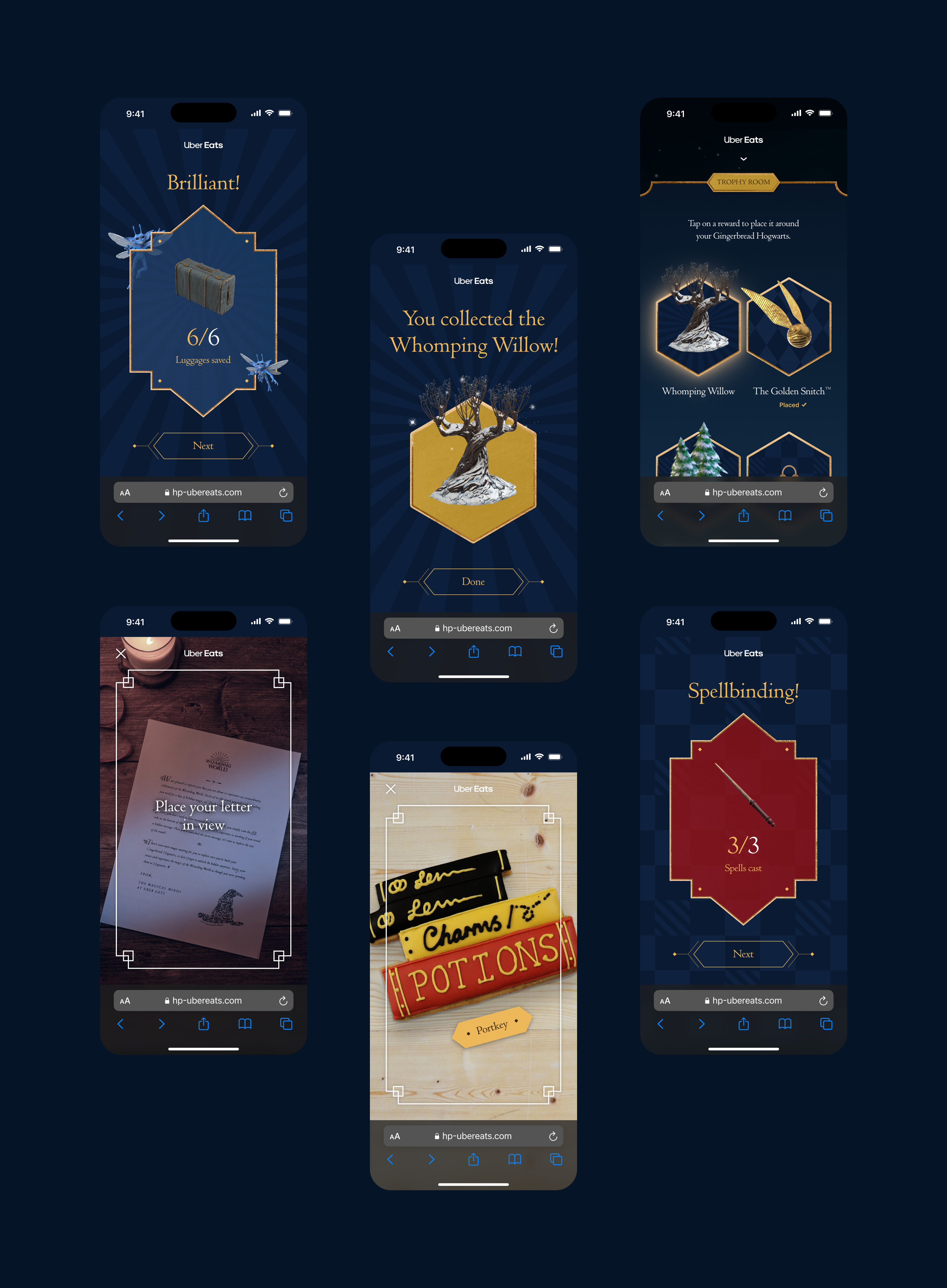 an immense effort between warner bros, ubereats, special group, and robotproof turned into a highly successful christmas campaign for harry potter fans. fans received a christmas trunk packed with a ginger bread hogwarts and christmas treats that doubled as qr codes they could scan to activate mobile ar games. completing 3 ar games of navigating a flying car, quidditch, and spellcasting rewarded players with trophies to decorate their hogwarts castle in ar. available in 18 cities, the campaign netted $8 million in earned media and extended for 3 months beyond the initial 3 week timeline due to high demand.